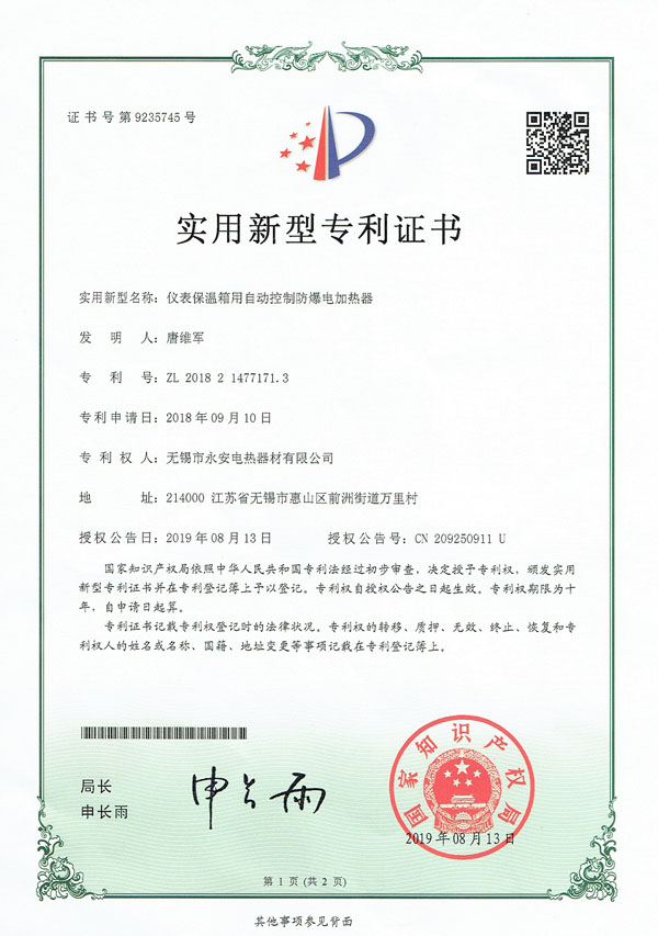 | 專利實(shí)用-箱體防爆電加熱器 |